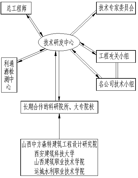 为了更好的为企业提供技术支持,进一步增强企业市场竞争力和经济效益,促进企业更快更强的发展,建立具有技术创新意识和具有较高层次技术水平的研发机构,公司在原有的工程技术部基础上,通过内部竞争上岗和外聘专家的措施,选取了一些既懂技术、具有多年施工经验,又具备管理素质的复合型人才,于2012年组建了山西运城市建筑工程有限公司技术中心,2014年通过了运城市市级企业技术中心的认定,2015年通过了山西省省级企业技术中心的认定。近几年来,在上级主管部门和公司领导的指导和关怀下,技术中心的管理创新体制和运行机制得逐渐的完善,技术创新能力和综合实力显著增强,在企业技术创新体系中发挥了强力的引导和支撑作用。
