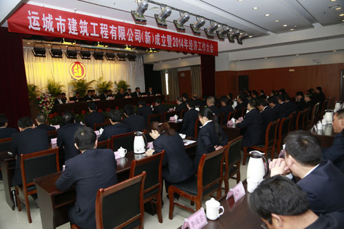 市国资委党委书记卢天狮在大会上宣读了运城市人民政府关于公司改制的有关文件决定。副董事长、总经理王立平宣读了公司2014年经营方案,副董事长、运城市盛世房地产开发有限公司总经理赵永新宣读了新公司干部任命决定,公司监事会主席杨军、第四分公司经理董波、第六分公司经理王敬和、机关行政工作部部长钟永来等代表基层单位和机关部室在大会上作了表态发言。