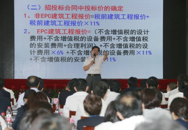 肖太寿博士就“营改增”后如何更好地推进企业发展与参会学员进行了深入交流,对“营改增”相关政策文件进行了重点解读,对合同管理、资金管理、财务管理、工程造价、材料采购及实务操作等工作给予提示性讲解,并对现场学员提出的疑难问题进行了解答。学员们仔细聆听,认真记录,学习热情高涨、现场气氛热烈,达到了预期的效果。