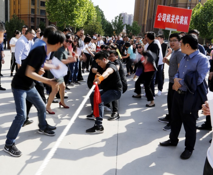 4月28日上午,值“五一”国际劳动节来临之际,为了丰富员工的文体生活,进一步营造团结协作的氛围,增强队伍的凝聚力和向心力,公司在建工大厦院内组织举办了2018年“庆五一”员工拔河比赛。来自基层单位的十二支代表队、200余名干部员工参加了比赛。