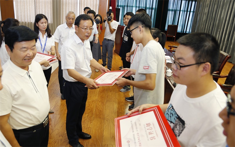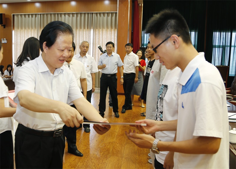 市教育局局长路胜利及康杰中学校长黄孟强对我公司爱心助学的义举给予了高度肯定和赞扬,并提出了殷切期望。同时,王立平董事长也代表华兆控股董事会、公司党委和公司爱心助学领导小组向各级领导表达了持续深入开展爱心助学活动的决心。他希望受助学生在大学期间,要珍惜光阴、勤奋学习、早日成才,用知识和智慧,为大运城建设添砖加瓦、贡献力量。