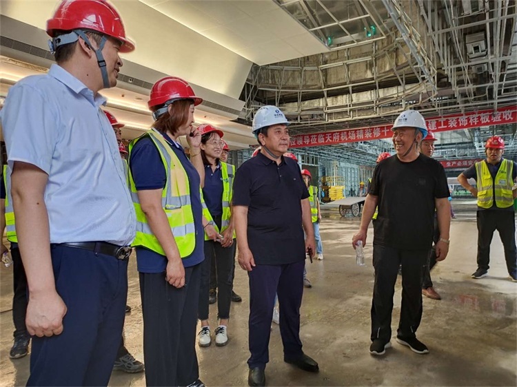 8月12日上午,华兆控股董事长兼总经理牛正泽冒着风雨莅临我公司承建的成都天府国际机场工程调研项目建设情况。华兆装饰公司副经理李强、徐金,装饰分公司副经理刘波璇陪同调研。